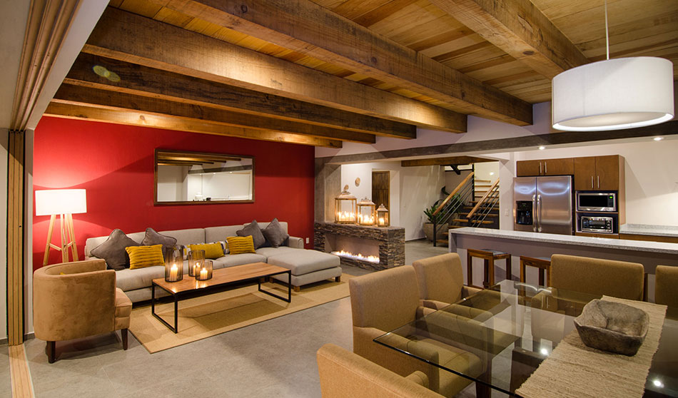 Los interiores fueron proyectados por una de las mejores casas de diseño interior en Guadalajara, resaltando la calidez de sus materiales y colores.
