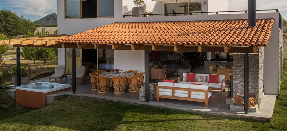 En la terraza techada se plantea la convivencia como prioridad. Incluye una chimenea de leña para hacer mas agradable la estadía.